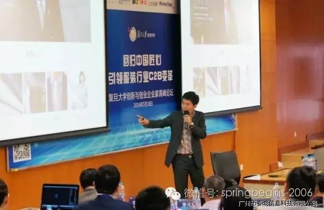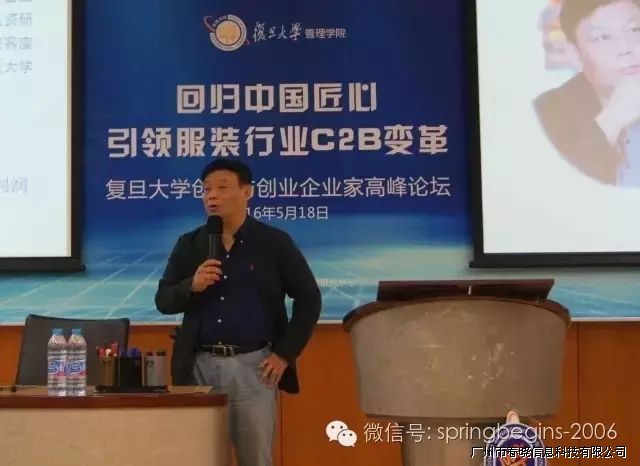 5月18日下午13:00,万众期待的“引领服装行业C2B变革,创新与创业企业家高峰论坛”在复旦大学管理学院如期召开并于下午17:30完美落幕,本次论坛由复旦大学管理学院主办、广州公海jcjc5500信息科技有限公司协助举办,会场内座无虚席,200余人到场参会。论坛邀请了多位资深学者、成功企业家等重磅嘉宾纯干货主题演讲,受到广泛好评,会议进行中掌声持续响起。