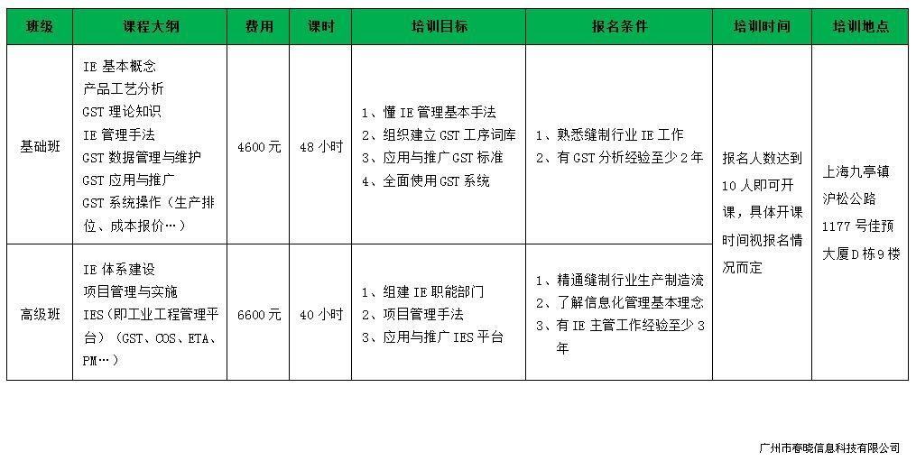 鉴于目前缝制行业IE方面的人才比较欠缺,以及众多行业从业人员希望有学习的机会,公海jcjc5500将根据行业需求,携手创定公司,在上海组织开展IE相关培训班,欢迎大家报名!具体如下: